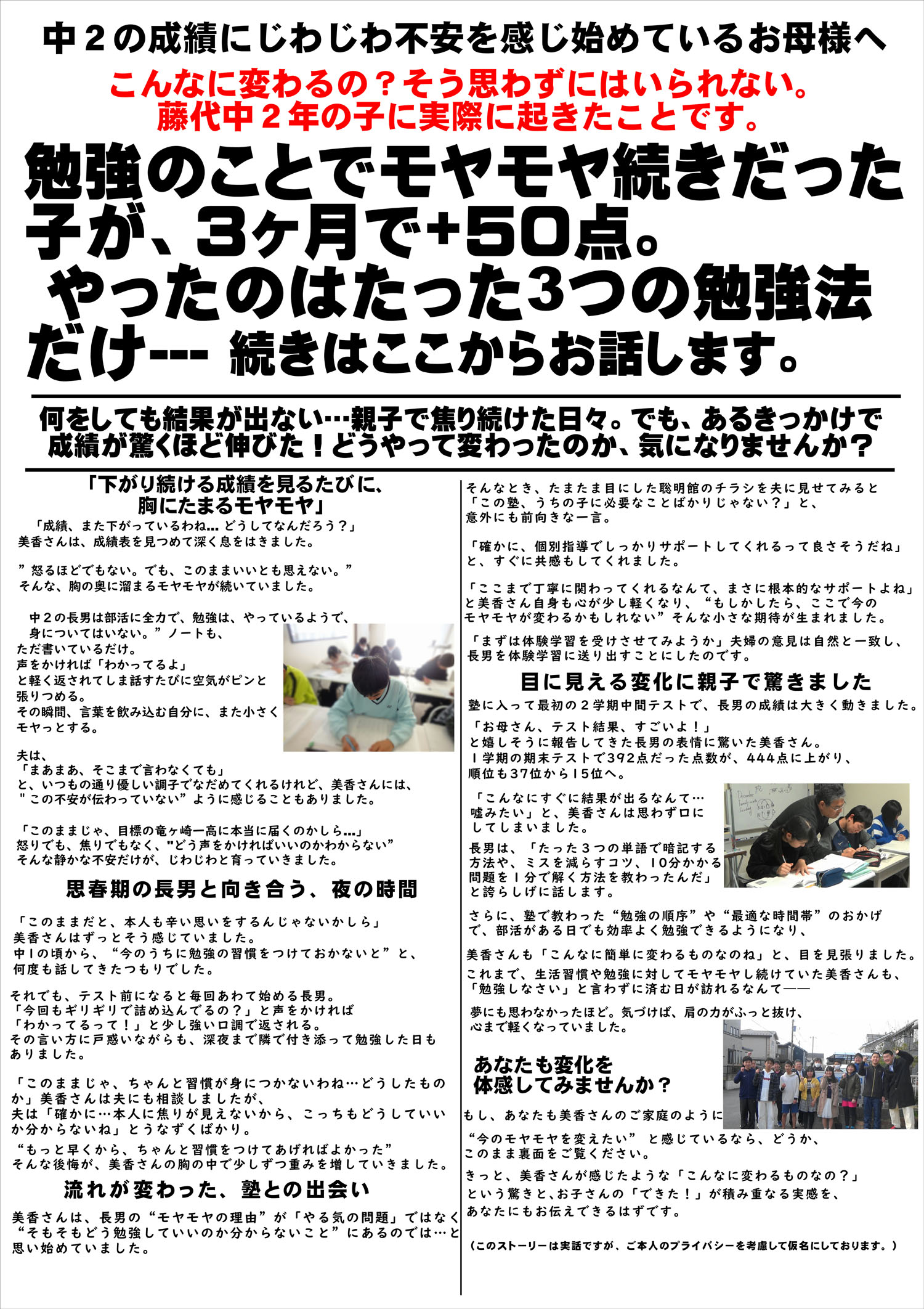 わずか3ヶ月で+50点アップした子がいます。